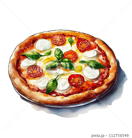 水彩イラスト ピザ マルゲリータ