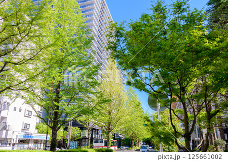 若葉萌ゆる杜の都 仙台 定禅寺通緑地と欅並木 交差点