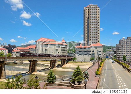 兵庫県宝塚市 晴天の宝塚大劇場と阪急電車
