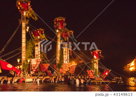 海中でキリコが舞う祭り(宝立七夕キリコまつり 石川県 珠洲市 能登半島)