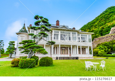 鳥取県鳥取市 春の白亜の洋館 仁風閣 宝隆院庭園を眺める2階のベランダ