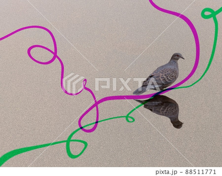 平日の昼間、暖かい地面に、寝そべる1匹の鳩