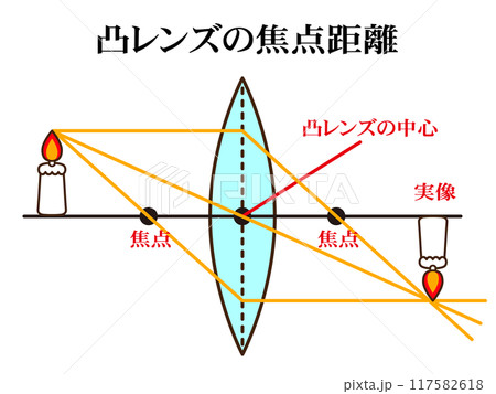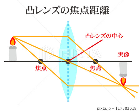 焦点距離と凸レンズ実験の作図のイラスト素材