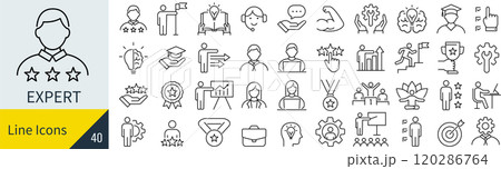 ベクターでモノクロのエキスパートに関する線画アイコンセット