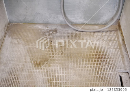 掃除前の水垢たっぷりのお風呂の床 Unit bath floor with limescale