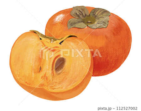Template of persimmon orange fruit with leaves. Watercolor hand-drawn elements. Isolated on white background. Delicious fruit clip-art illustration. Used on labels, napkins, towels, tableware, package