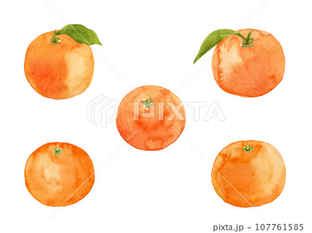 水彩で手描きした、葉っぱ付きみかんのイラスト
