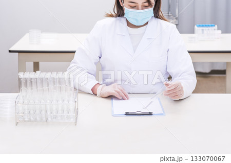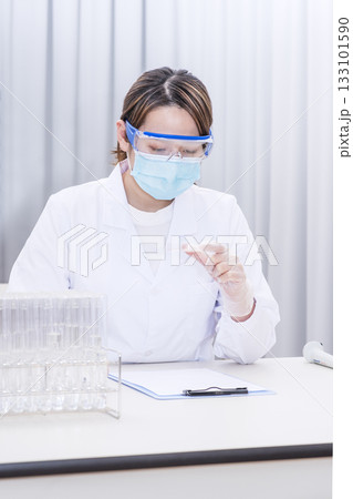 研究する研究員 実験する研究員 試験管を持つ女性 イメージ素材
