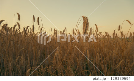 Golden Grasses Beneath a Beautiful Sunset Sky, Creating a Scenic and Peaceful Atmosphere