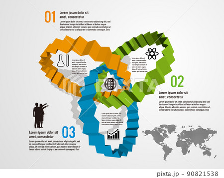 交差する3つのギザギザリング インフォグラフィック ベクターイラストレーション