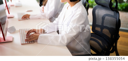 白衣の女性が入力