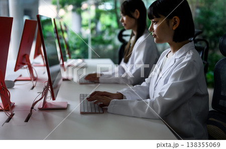 研究室でPC作業する女性