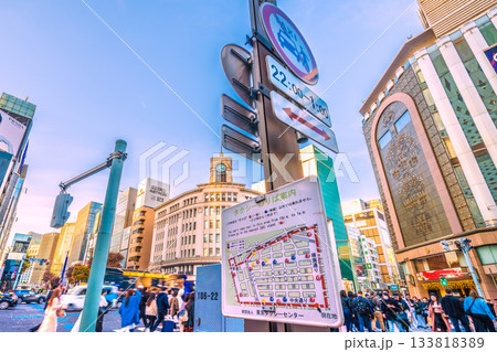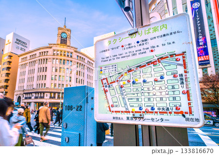 日本の東京都市景観 師走…。銀座には多くのタクシーが行き交う…乗車禁止地区がある…