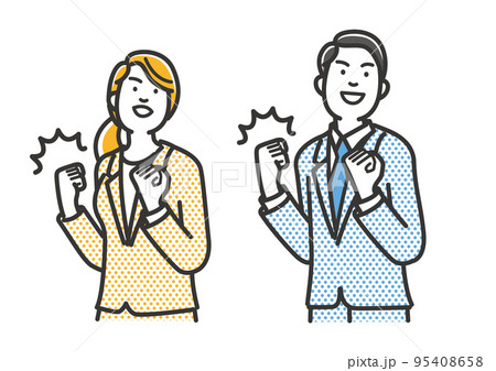 気合いを入れるビジネスパーソンのセット素材