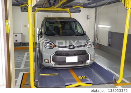 機械式駐車場に入出庫するコンパクトカー