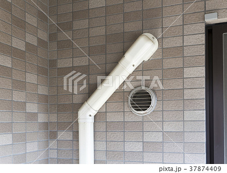 住宅外壁 排水管とエアコン室外機 化粧カバー