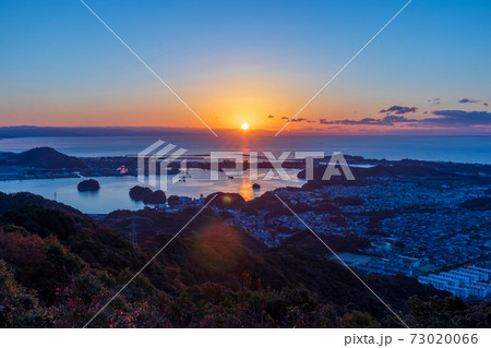 日の出 鷲尾山山頂からの景観 冬 (高知県 高知市)
