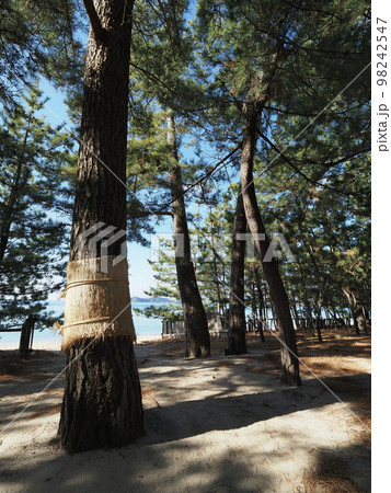 室積海岸の松林。冬のこも巻き②(山口県光市)