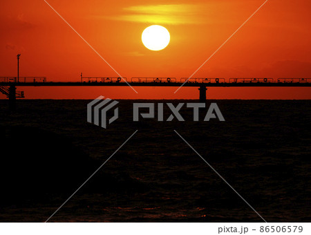 山口県光市の室積海岸から眺真っ赤なめる夕景