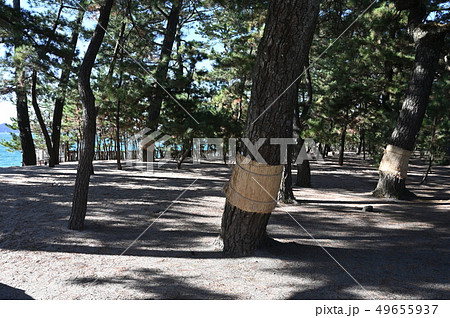 室積海岸の松林。冬のこも巻き②(山口県光市)