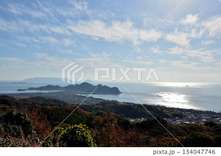 初冬の陽光差す瀬戸内海と象鼻ケ岬(山口県光市)