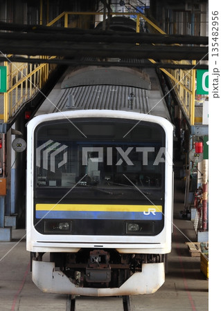 大宮総合車両センターにて検査中の千葉地区209系電車(埼玉県さいたま市大宮区)