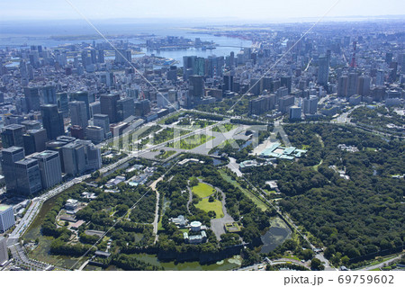 皇居上空よりお台場方向を望む・皇居・空撮