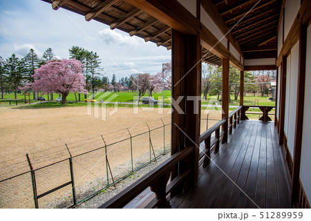 北海道 静内二十間道路桜並木の先にある龍雲閣 外廊下 新冠牧場の中