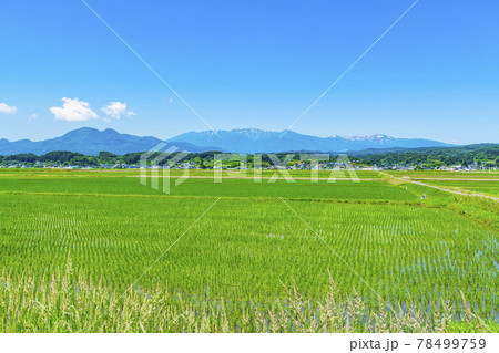 蔵王 蔵王連峰 稲 田んぼ 田舎 東北地方
