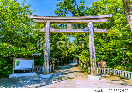 日本の寒川都市景観 相模國一之宮 寒川神社。方位盤と渾天儀…=令和6年7月21日