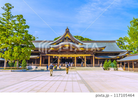 日本の寒川都市景観 相模國一之宮 寒川神社・御本殿などを望む=令和6年7月21日