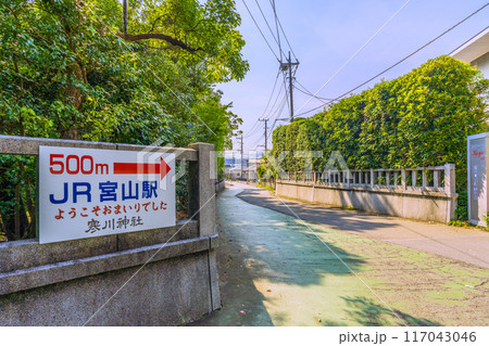 日本の寒川都市景観 7月。宮山駅。寒川神社下車駅正面信号右へ500メートル。寒川神社への道順写真=2