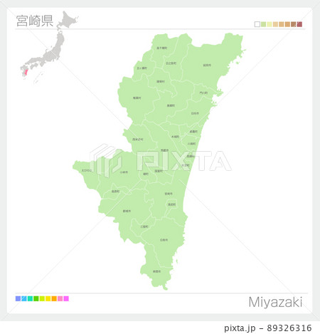 宮崎県の地図・Miyazaki(市町村・区分け)