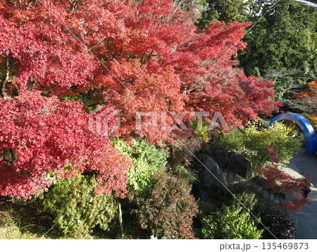 筑波山ケーブルカー宮脇駅前のアーチとカエデの紅葉