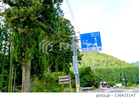 道の駅 美山ふれあい広場への道しるべが見える宮脇交差点 京都府美山町宮脇