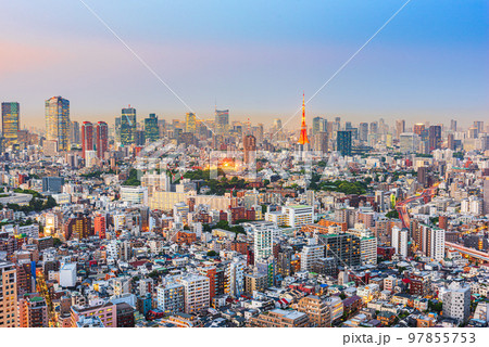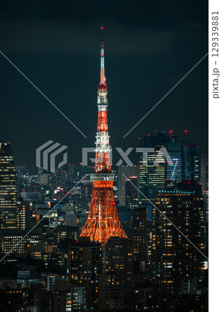 Close-up of Tokyo Tower and Tokyo cityscape at night