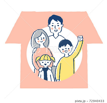 家と笑顔の4人家族