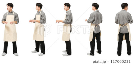 スリッパ室内エプロンキッチンで調理する男性の全身人物切り抜き素材