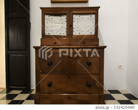 elegant antique display, display featuring intricate oak craftsmanship and periodappropriate accents