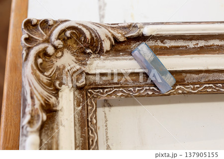 Wooden Frame With Intricate Design Displayed on a Table in a Studio During Daylight