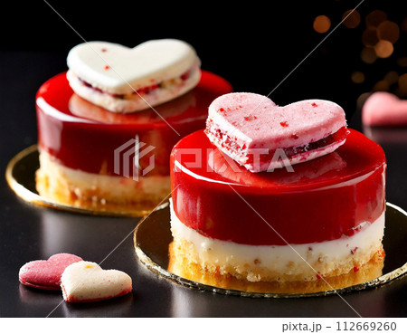 ハートをモチーフにしたラズベリーとバニラのムースケーキ