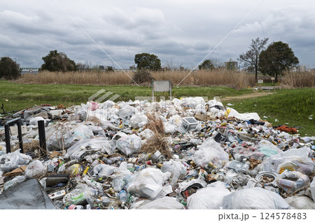 不法投棄されたゴミの山の風景