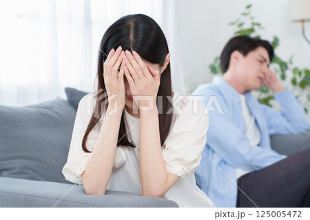 家で悩む男女