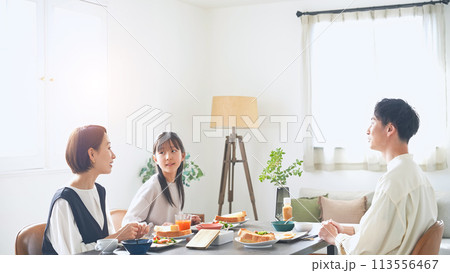 笑顔で食卓を囲む親子