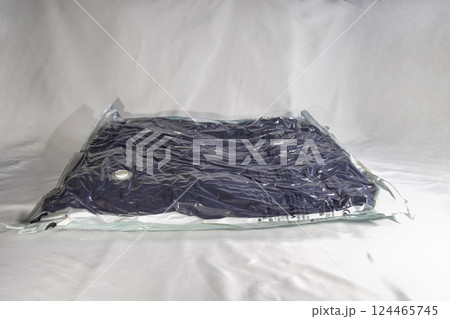 圧縮袋で収納された衣類と寝具