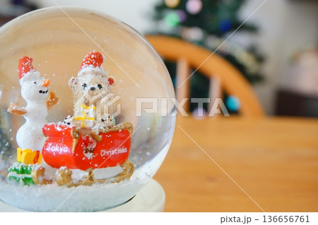 クリスマススノードーム 室内で撮影した冬の装飾素材