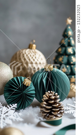 Decorative Holiday Ornaments Displayed With Pine Cones and Festive Lights for a Cozy Winter Atmosphere