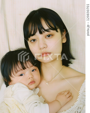 愛情に包まれたアジア人赤ちゃんとママも自然なポートレート
