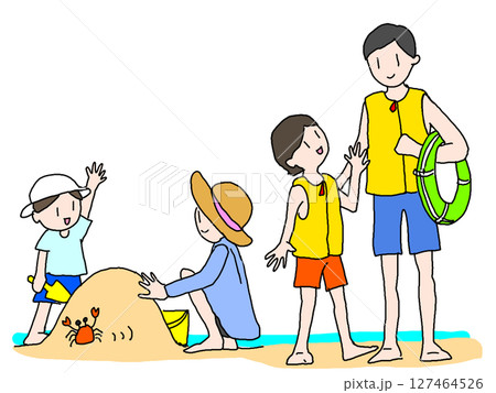 海水浴に来た家族のイラスト