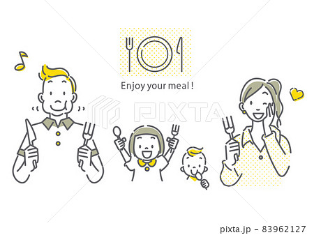 食事を楽しむ家族 シンプルでお洒落な線画イラスト